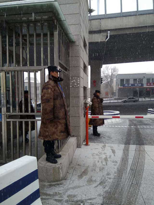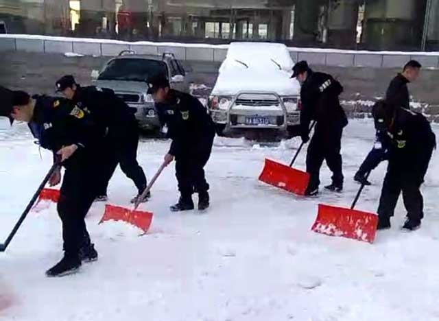 2017年 2月19日,天空突然飄起了大雪,新疆沙漠特衛(wèi)全體保安員頂風(fēng)雪、戰(zhàn)嚴(yán)寒,清掃積雪,堅(jiān)守崗位,加大巡邏,如火如荼的開(kāi)展了大雪天氣的安全防范工作,確保客戶單位和人員安全,用實(shí)際行動(dòng)演繹了一曲愛(ài)崗敬業(yè)、無(wú)私奉獻(xiàn)的“保安之歌"。