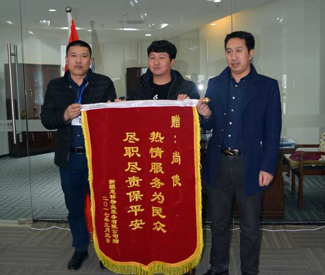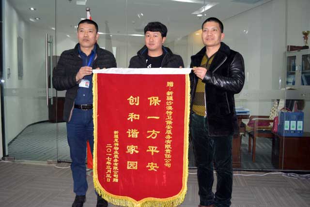 2017年3月13日,新疆意祥物業服務有限公司負責人特送來兩面錦旗以表對沙漠特衛及保安部經理尚俊的感激。