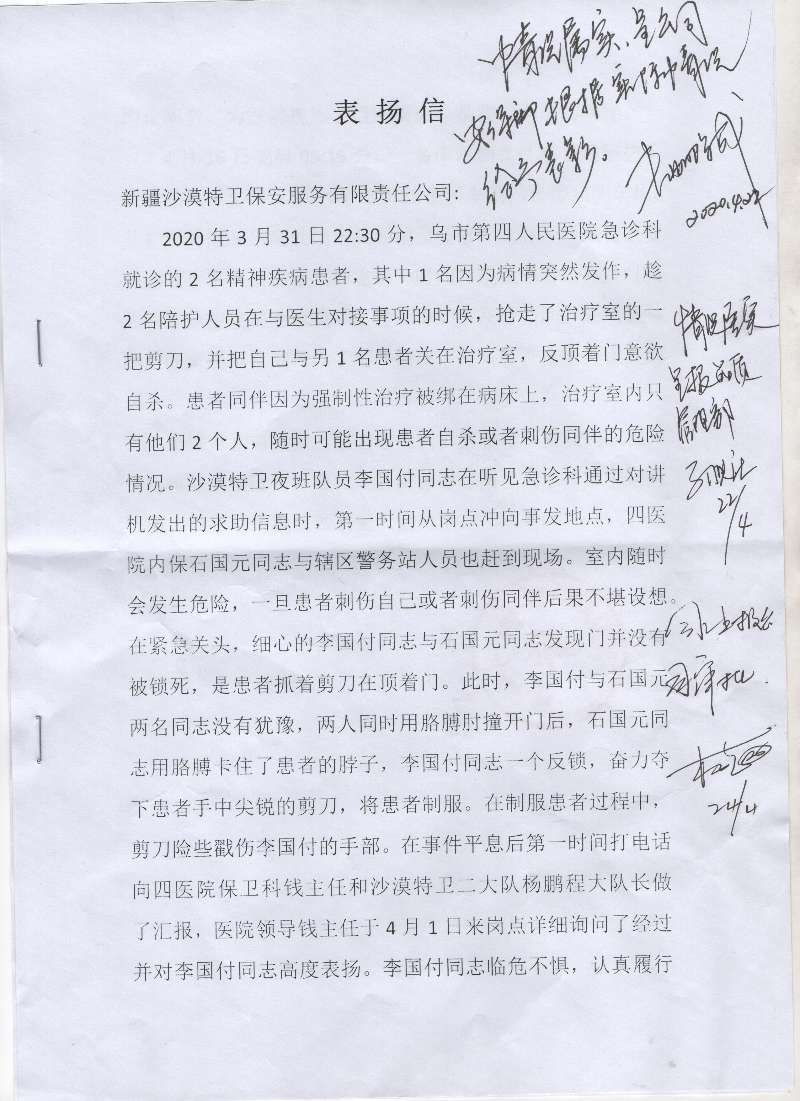 熱烈祝賀 新疆沙漠特衛保安服務有限責任公司 李國鵬同志被授予 第五屆烏魯木齊市道德模范榮譽稱號